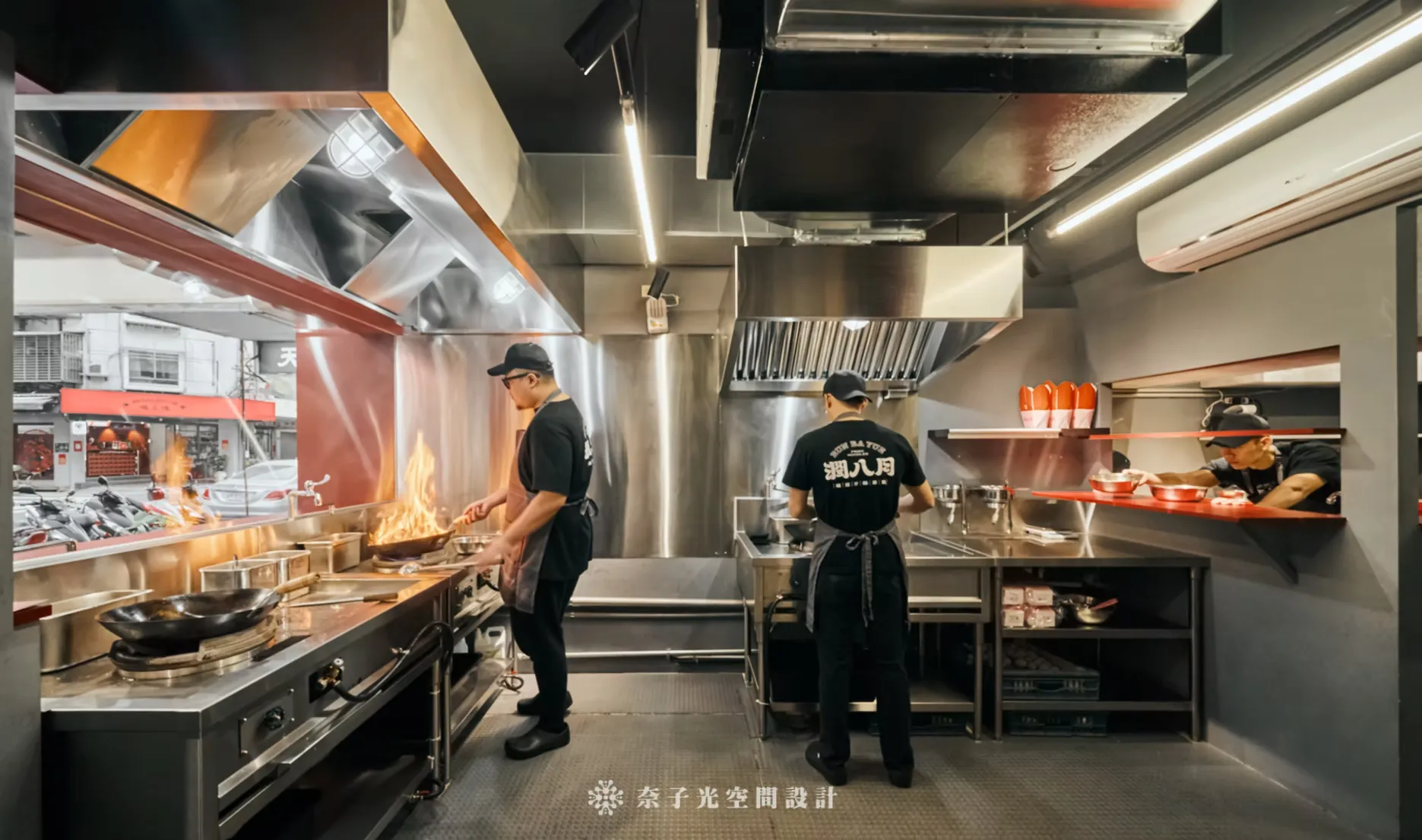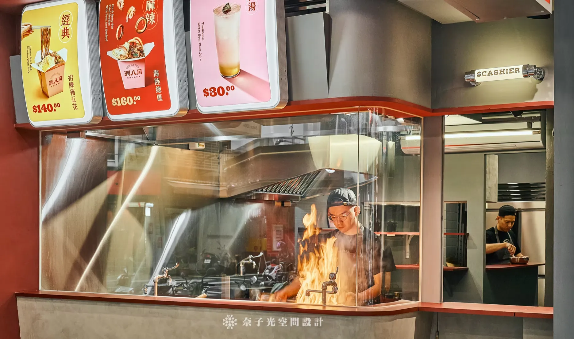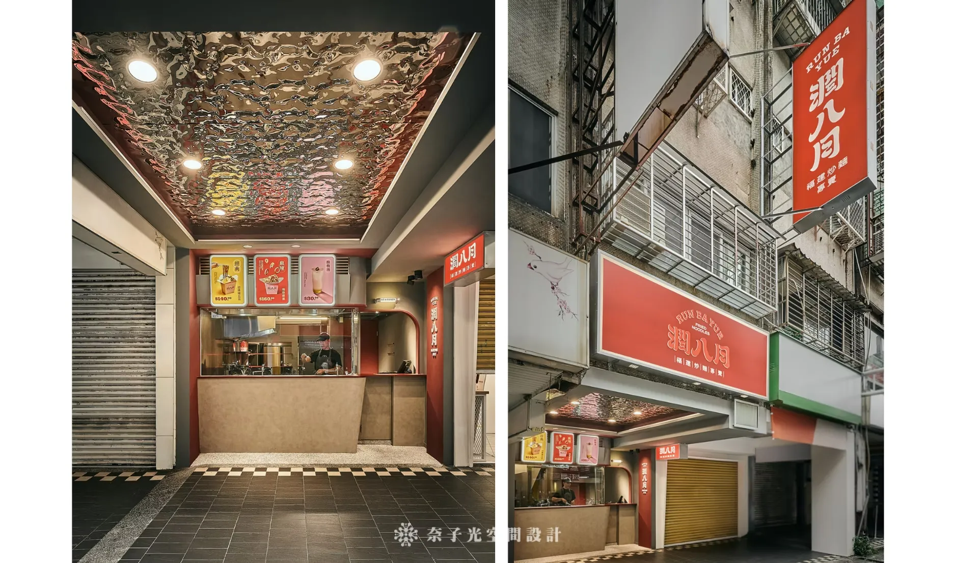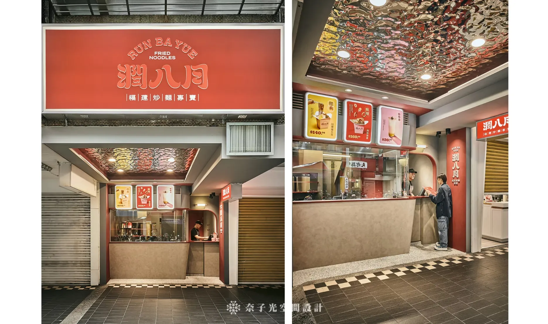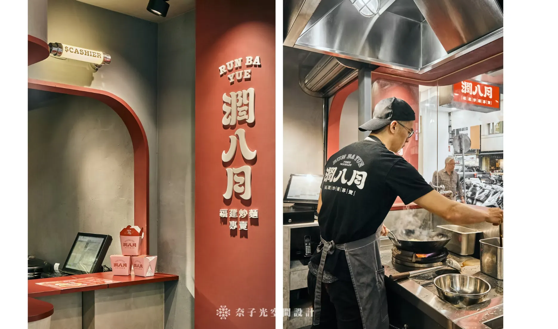 「炙」代表火焰、熱情、烹飪的動態;「味」代表食物、香氣和口感;「之間」則強調人與空間的連結,形成一種互動的氛圍,尤其設計了弧形玻璃展示窗,讓客人可以安全觀賞製作過程,感受「味」的真實存在。這裡是由總監的大學同學開的店面,在臨江夜市旁邊,口味簡直是一絕! 每次經過都要買一碗! 因為大家同樣是念設計學院,所以在美學溝通上我們一路通暢,只是因為最終選的行業別不同,走向不一樣的人生軌跡,室內設計其中一點最迷人的地方就是可以因為空間,將不同的背景職業,結合在一起。