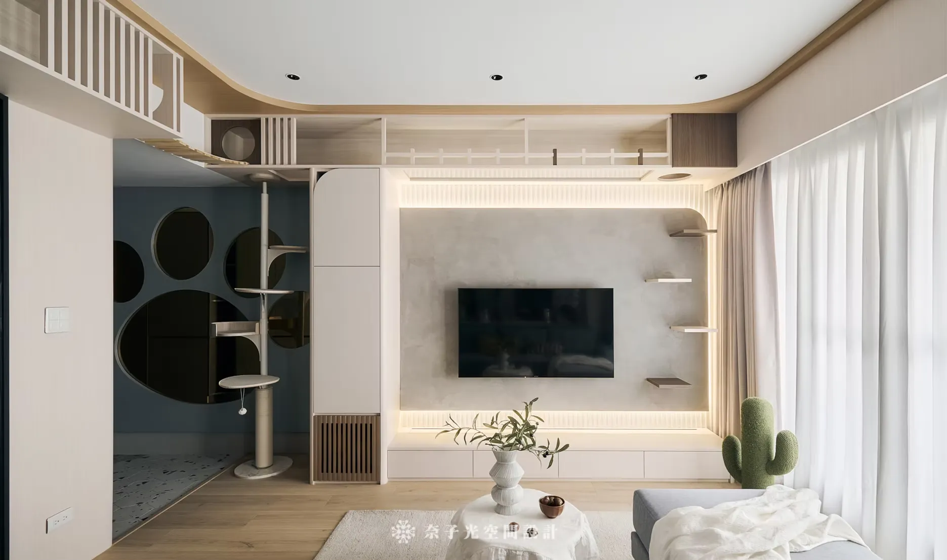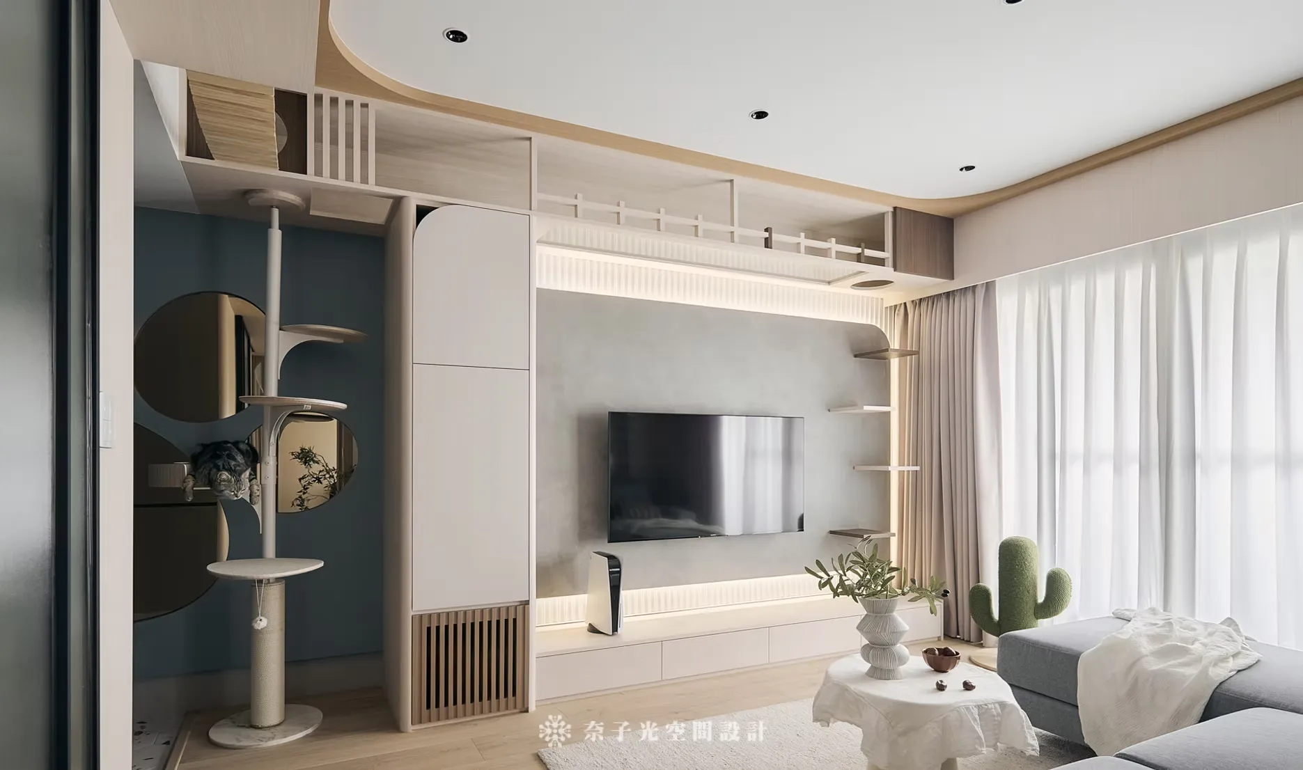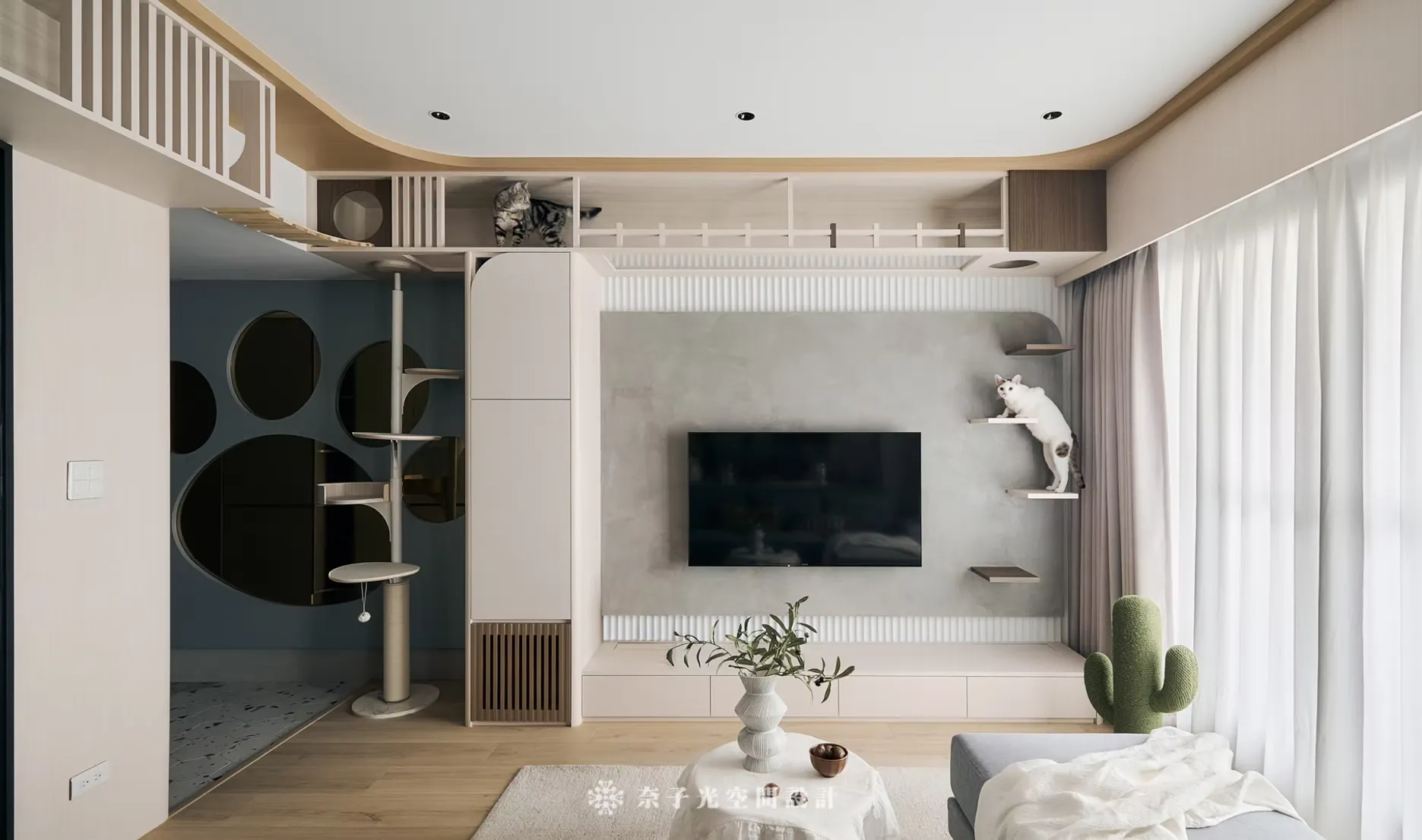 整個空間除了搭配屋主喜歡的風格外,「貓宅共生」是一個強調和諧共存、舒適共享的設計哲學。
